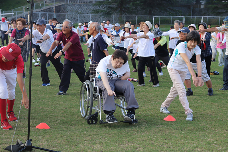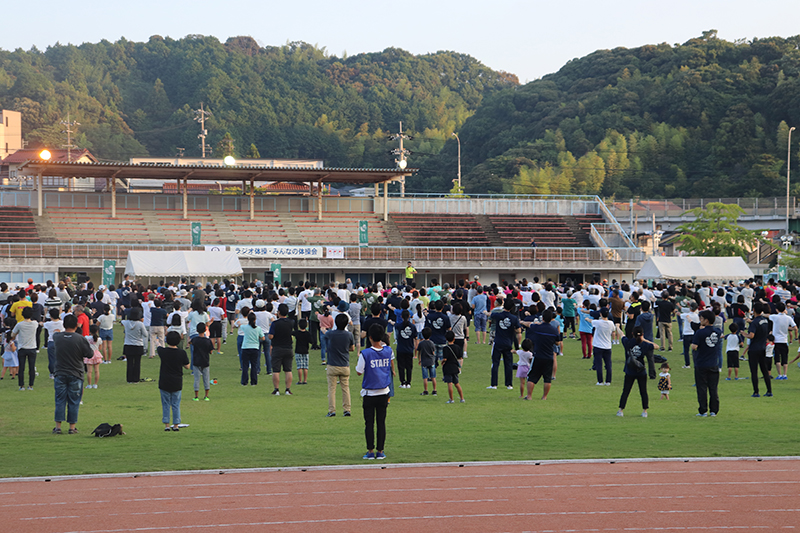 57年振りの開催は自治体の担当者の方も驚くほど多数の方が参加され、用意した参加記念品引換券も足らなくなるほどで、今後のラジオ体操の普及促進の契機となる体操会となりました。