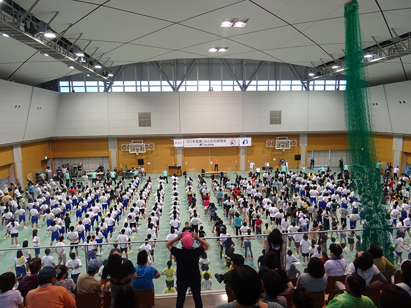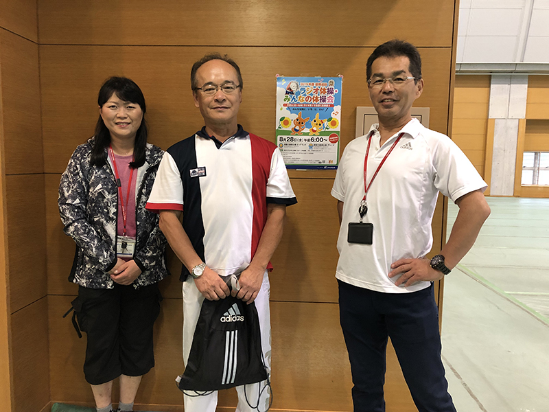 参加者の皆さんは、雨を吹き飛ばすほど元気いっぱい生き生きと終始楽しく体操を行い、熱気あふれるラジオ体操会となりました。