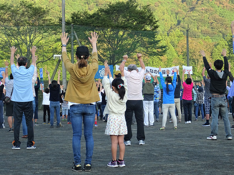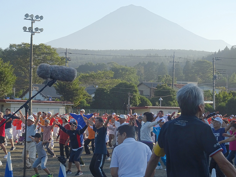 富士宮市と芝川町の合併10周年を記念して、今回の特別巡回ラジオ体操会が開催されました。
