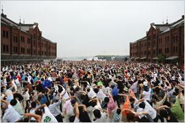 2009年8月2日(日)、横浜開港150周年で賑わう横浜市中区の赤レンガ倉庫広場で、「第48回1000万人ラジオ体操・みんなの体操祭」を開催しました。