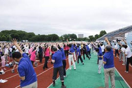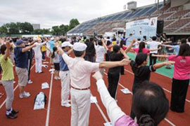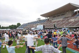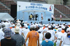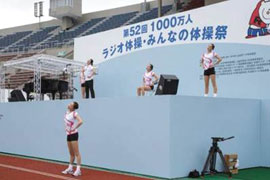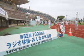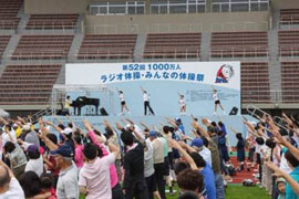 今年度は2013年7月28日(日)に、秋田県秋田市の八橋(やばせ)運動公園陸上競技場で「第52回1000万人ラジオ体操・みんなの体操祭」を開催致しました。