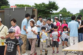 ラジオ体操カードを持ったお子さんからご年配の方までたくさんの方々にご参加いただきました。