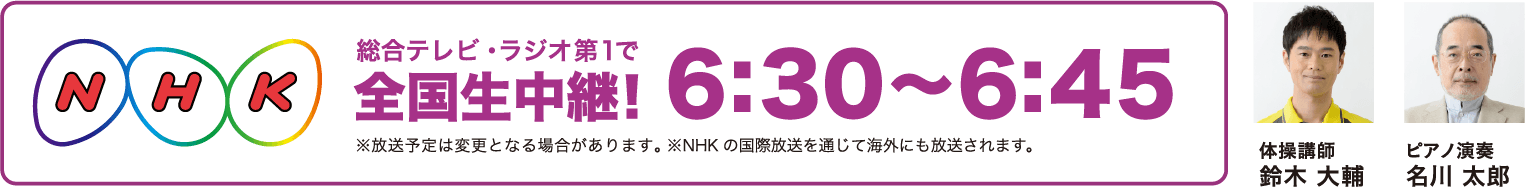 ※1000万人ラジオ体操・みんなの体操祭は中止となる場合がございます。当初ご案内していた荒天会場では開催いたしません。