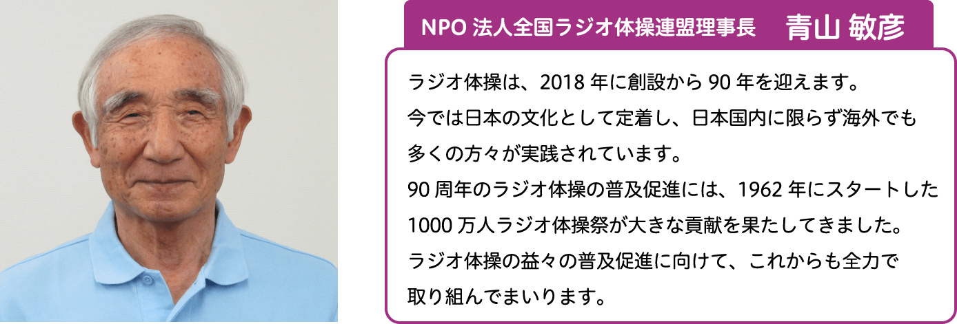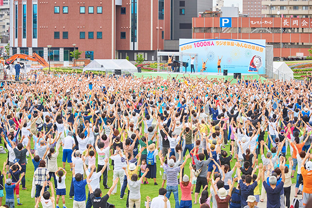 1000万人にも及ぶ人々に一斉にラジオ体操を行ってもらうという趣旨で、1962年から毎年1回実施しています。