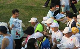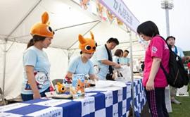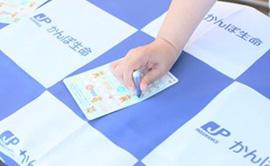 会場内のかんぽ生命ブースではラジオ体操の解説小冊子を受け取っていただいたほか、ラジオ体操出席カードをお持ちのお客さまにはスタンプを押させていただきました。また倉敷市ブースでは、平成30年7月豪雨災害義援金を受け付けており、ご来場の皆さまからたくさんの温かいご支援が寄せられていました。