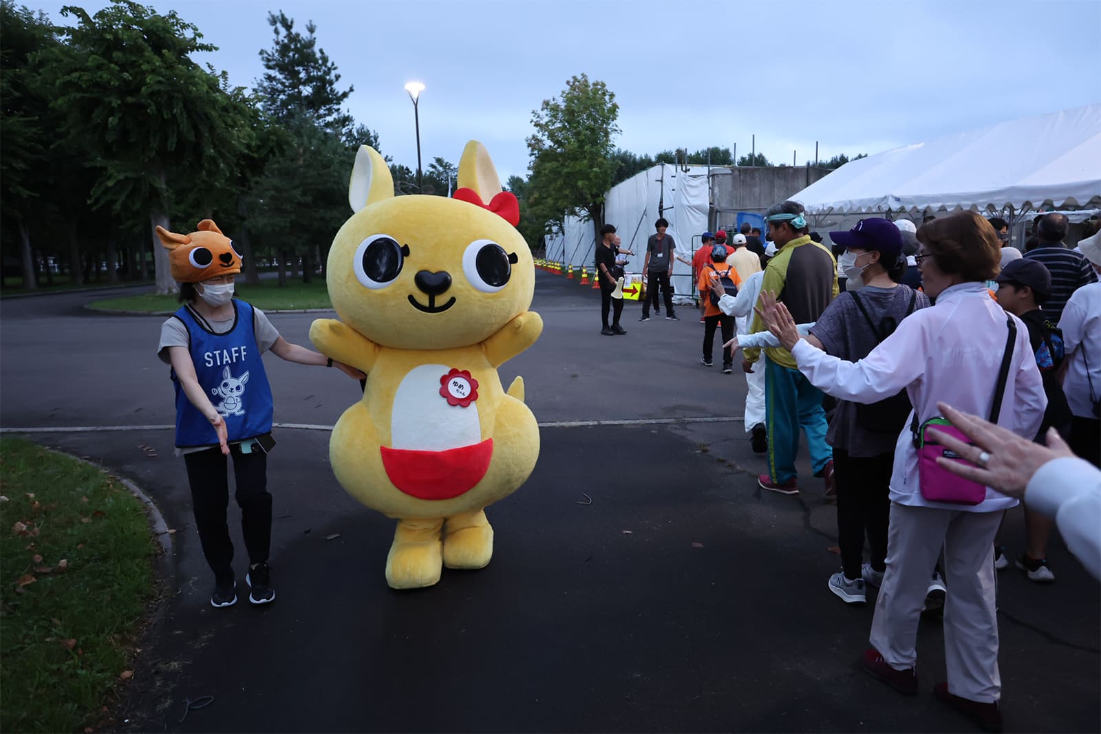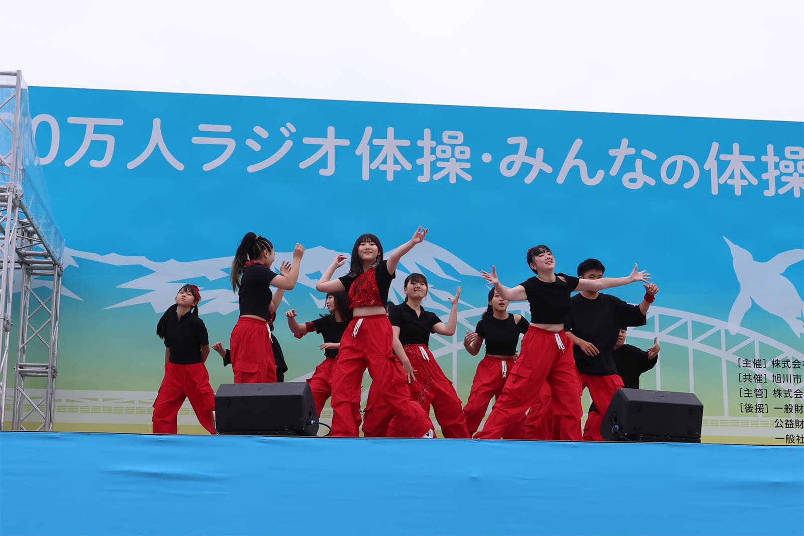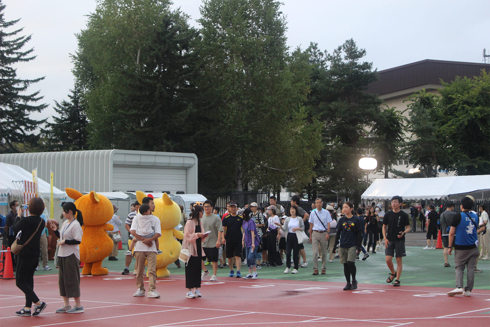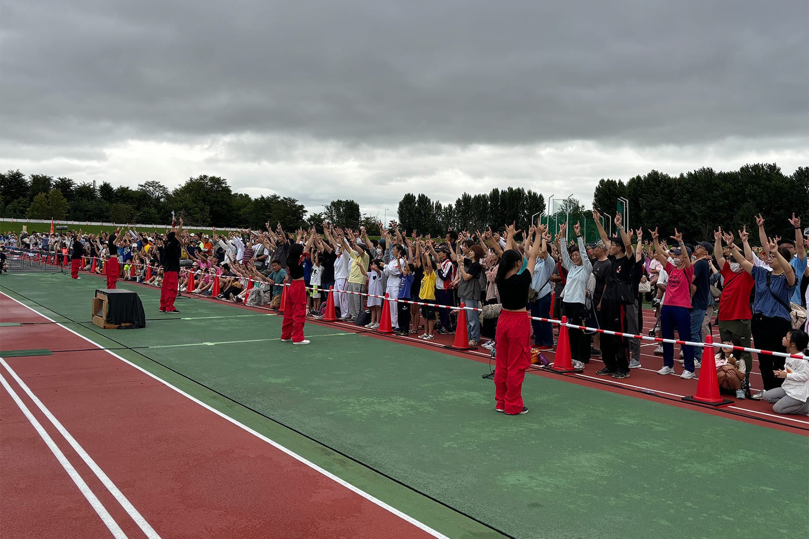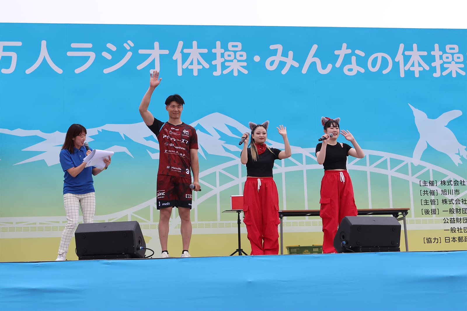 アトラクションは、荒天会場であるリクルートスタッフィング リック&スー旭川体育館を本拠地とする男子プロバレーボールチーム 「ヴォレアス北海道」の専属ダンスチームVOREAS DREAM PROJECTの皆さまによる「ダンスパフォーマンス」がありました。SVリーグ2024-2025シーズン用に作られた「バイトダンス」をいち早く披露いただき、観客のみなさんも一緒に踊るなど大いに盛り上がりました。