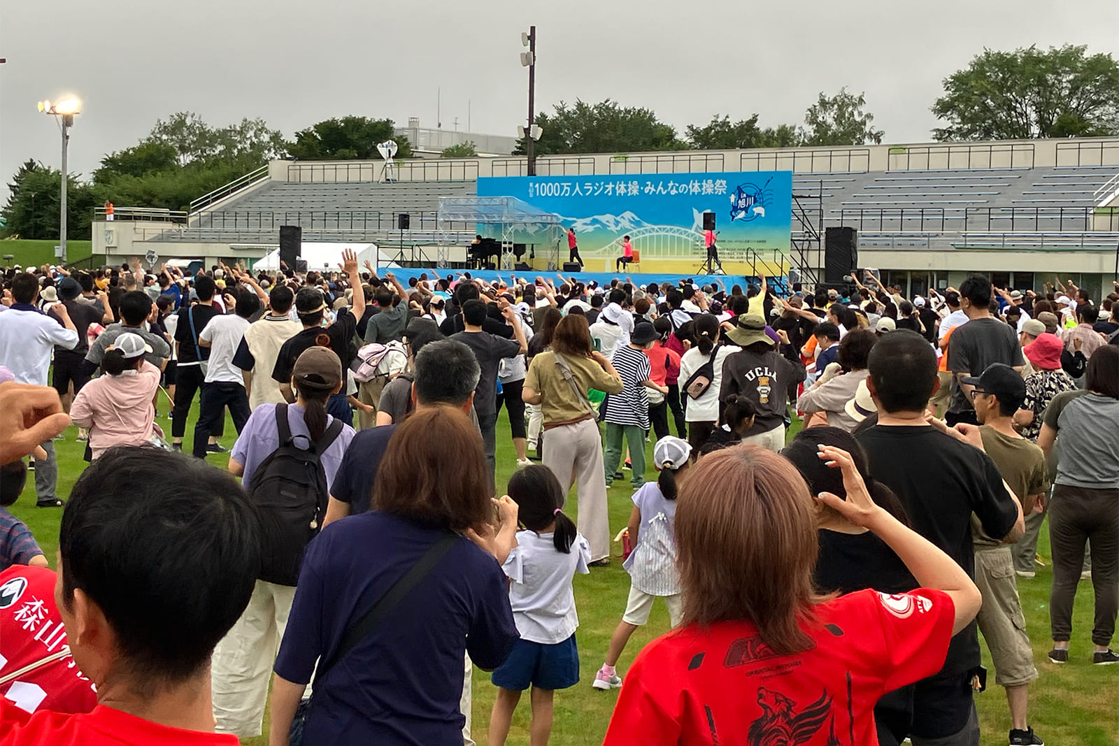 8月4日(日)に、旭川市花咲スポーツ公園陸上競技場で「第63回1000万人ラジオ体操・みんなの体操祭」を開催しました。道内では12年前の札幌市以来となる旭川市にて旭川市花咲スポーツ公園陸上競技場を会場とし、爽やかな風が吹く中、体操祭を実施いたしました。