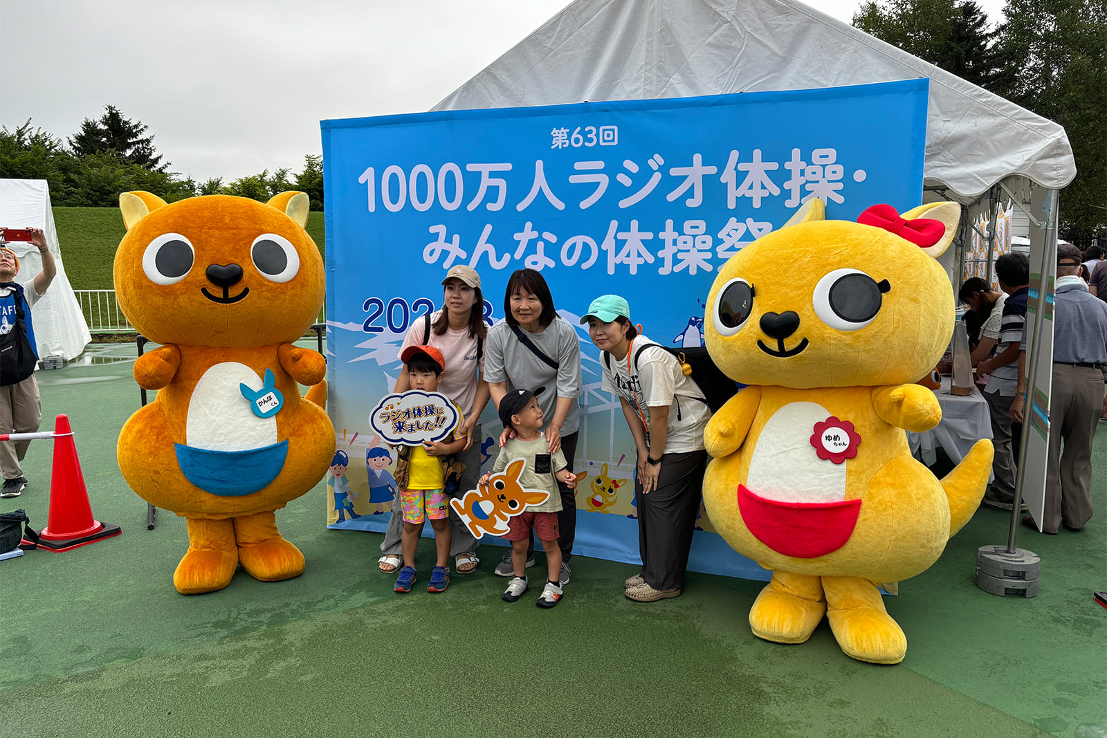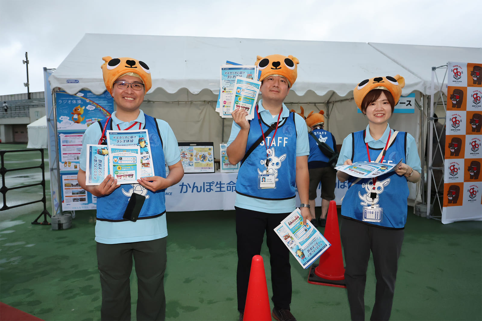 会場内のかんぽ生命ブースでは、かんぽ生命のラジオ体操に関わる取り組み紹介パネルやラジオ体操情報誌の配布を行ったほか、かんぽくん・ゆめちゃんとの記念撮影を実施し、多くの参加者に楽しんでいただきました。