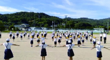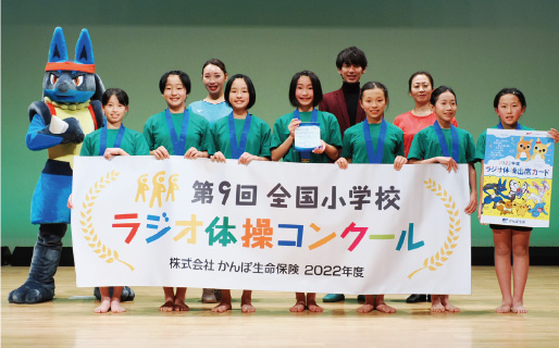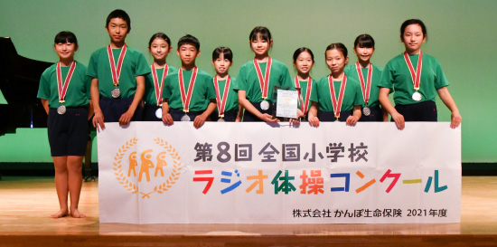 大臣賞日ごろからラジオ体操を通じた子どもの健全育成に取り組んでいる学校。子どもたちがラジオ体操の正しい動きをお互いに教え合うなど、学年の垣根を越えて、一丸となってラジオ体操に取り組んでいるチーム。