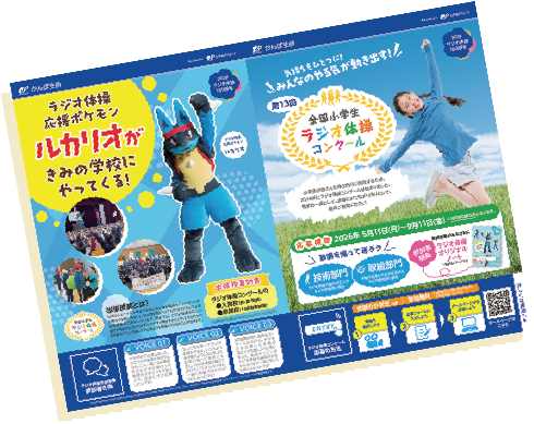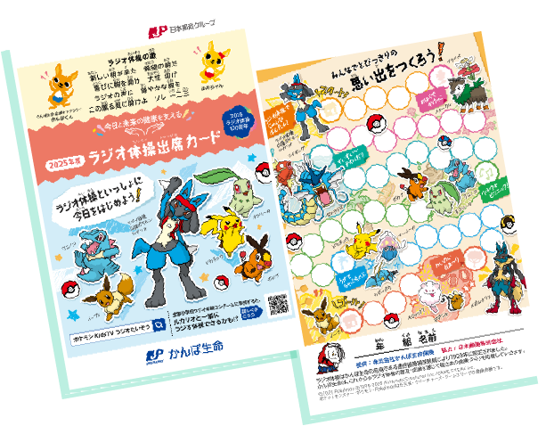 ルカリオがラジオ体操出席カードのデザインに登場するなど、みんなの健康づくりを応援します。