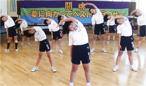 一生懸命にラジオ体操を行い、次回コンクールに向けての飛躍が楽しみなチーム。