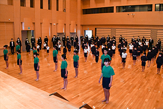 - みんなで先輩の良き伝統を受け継いで体づくりを行っています。学校としてはこれからもコンクールに参加し、金賞を目指して子供たちと共に取り組んでいきたいと思っています。また毎年、運動会や地域の方の集まり、参観日にラジオ体操を披露しています。これからも地域の方と共にラジオ体操ができる場を増やしていきたいと思っています。
