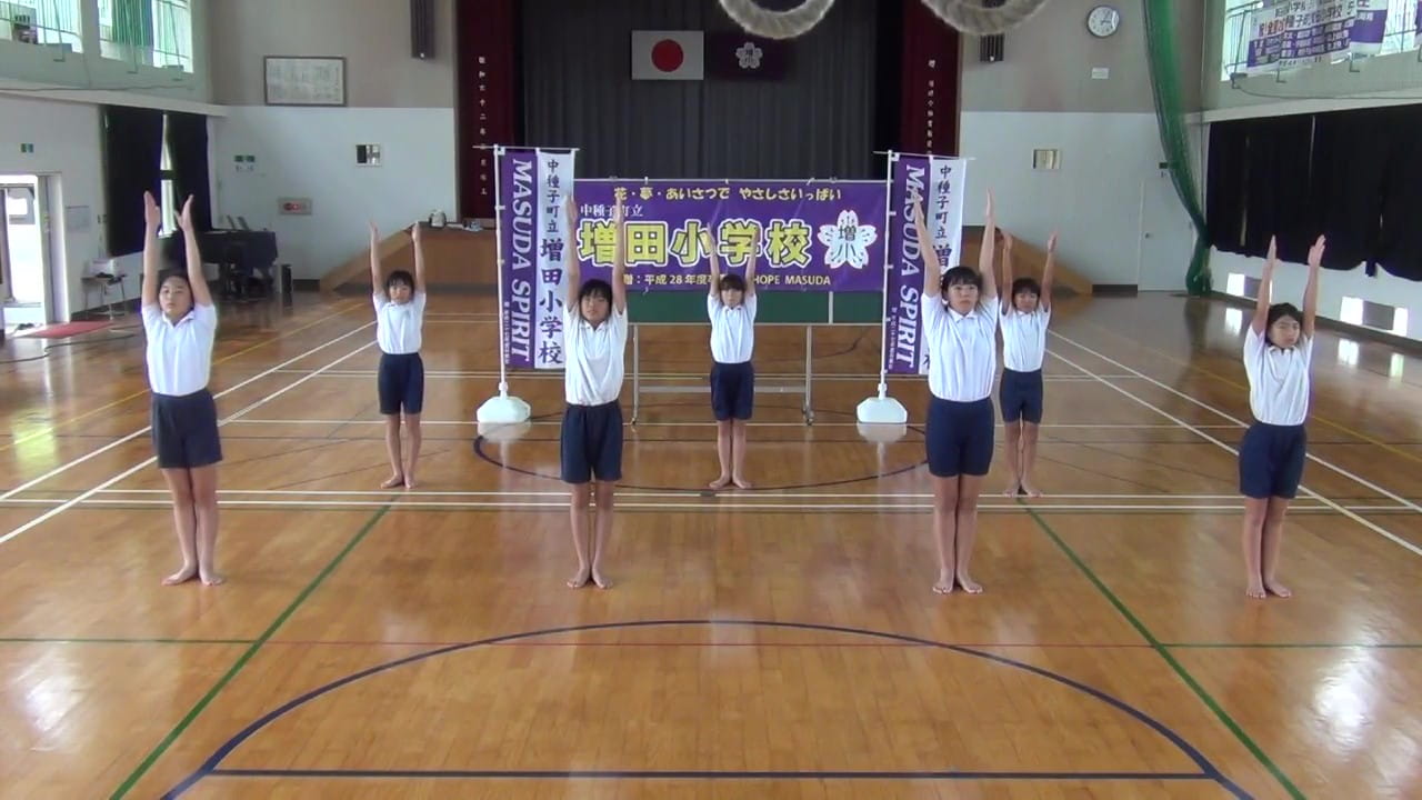 運動の目的をしっかりと理解しながら丁寧に体を動かしている点が良かったです。チーム全体の一体感があり躍動感溢れる動きがとても印象的でした。また、コンクールに向けて仲間と学び合う楽しさも経験したと思います。これからも増田小学校の良い伝統を継承して元気いっぱいのラジオ体操を期待しています。頑張ってください(審査員)!