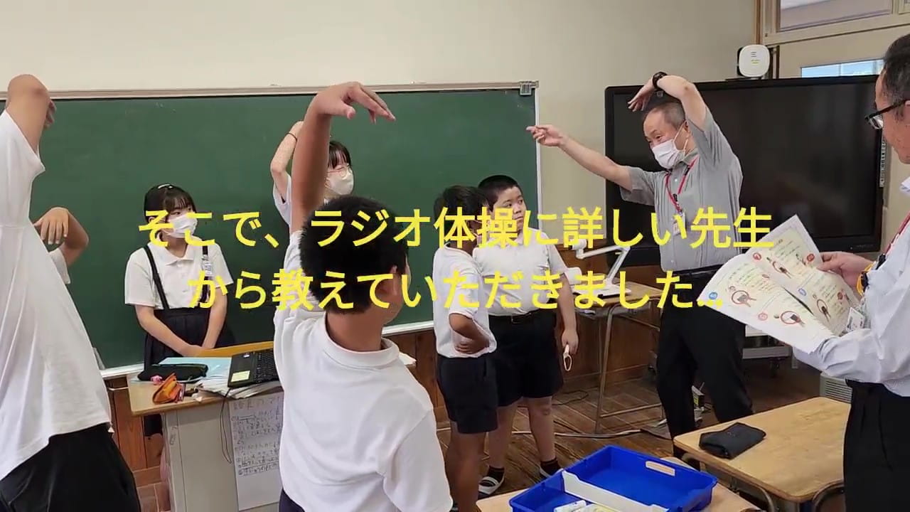 体育委員会が『正しいラジオ体操紹介パンフレット』『オリジナルラジオ体操カード』を作成、保護者や地域の方々へ配布し、朝のラジオ体操への参加を呼び掛ける活動や、有志児童が学校の垣根を越えて幼稚園・保育園などを訪問する活動は、学校外にもラジオ体操の輪を広げようとする素晴らしい取り組みだと思います。