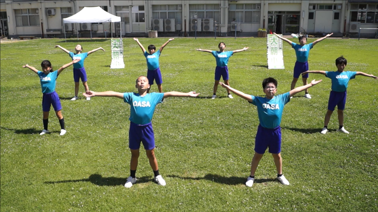 全体的に元気よく、力強く、大きなラジオ体操ができていました。特に、2番の腕を振って脚を曲げ伸ばす運動は、腕の力が上手に抜けていてとても良かったです。また、9番は呼吸がしっかり見え、10番はとても大きく動けていたと思います。動画を見ている側も身体を動かしたくなるような素晴らしい体操でした。この度は優秀賞おめでとうございます。(審査員)