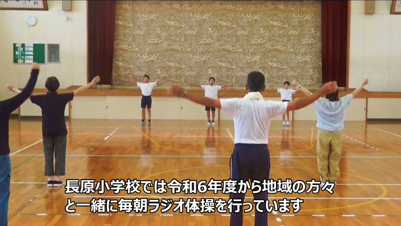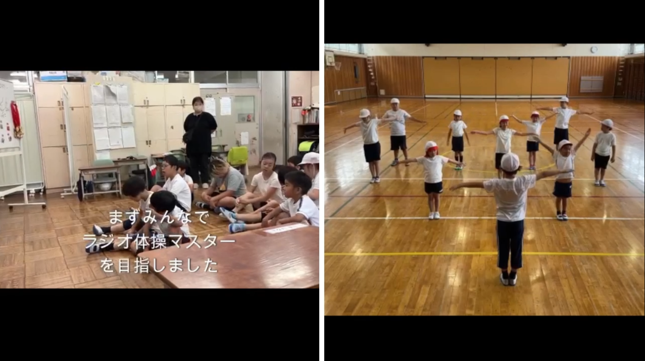 児童数が減り、あと2年で閉校になってしまうとのことですが、自作のポスターを作成して地域の方々を学校に招き、ラジオ体操を行う交流がとても印象的でした!ラジオ体操をする際には、子どもたちが先頭に立って指導員目線で逆方向から体操をしている姿が見られ、意識の高さを感じました。また、夏休みに限らず、年間を通じてラジオ体操に取り組んでいる点も素晴らしかったです!