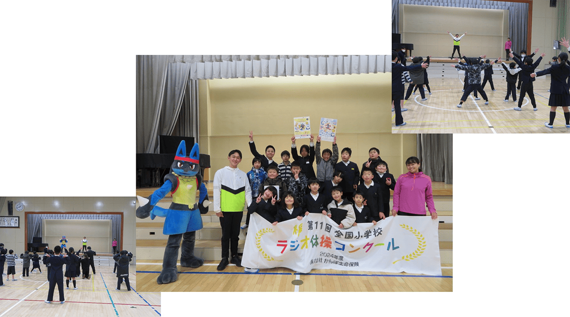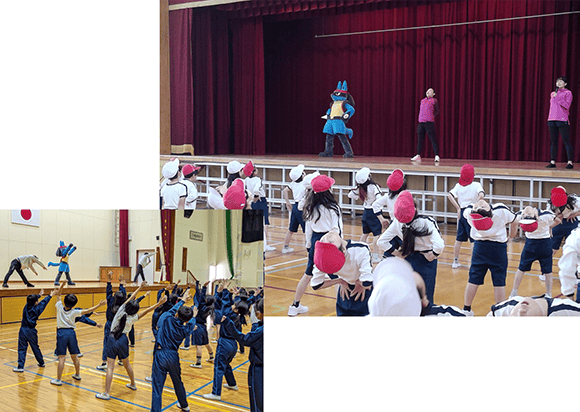 2023年度に引き続き、「ラジオ体操応援ポケモン」のルカリオもすべての出張授業に参加!子どもたちだけでなく、地域のみなさまも楽しみにしてくださり、会場はおおいに盛り上がりました!