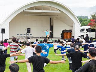 ニセコの山々を背景に、参加者の皆さんは、さわやかに汗を流し、共和町のエネルギーが集結した体操会となりました。