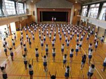 群馬県高崎市立中央小学校でラジオ体操出張授業を行いました。3年生から6年生の児童170人と先生の他、保護者の方々や高崎市民ラジオ体操会のメンバーも参加し、授業では、講師の西川先生とアシスタントの松下さんから基本動作を一つひとつ丁寧に指導いただけ、元気よくラジオ体操ができ、また、ラジオ体操への興味が深まった授業となりました。