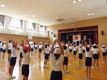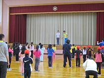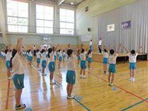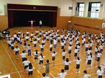 大阪府大阪市にある大阪市立南小学校にて、ラジオ体操出張授業を行いました。当日は4年生から6年生までの児童約100人が参加しました。 体操講師の多胡先生とアシスタントの清水さんによる楽しくわかりやすい指導で、近々行われる運動会に向けての練習にもなりました。 はじめは緊張気味だった児童たちも徐々に緊張がほぐれ、笑顔が多くみられるようになり、元気でのびのびとした楽しい授業になりました。