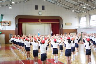 | 開催概要 | 長野市立綿内小学校にて、体操講師の多胡先生と、アシスタントの天井澤さんによるラジオ体操出張授業を開催しました。 スポーツへの取り組みが盛んな小学校ということで、ラジオ体操出張授業にも積極的に取り組んでいただき、全校児童445人が参加して、とても盛り上がった出張授業になりました。 |