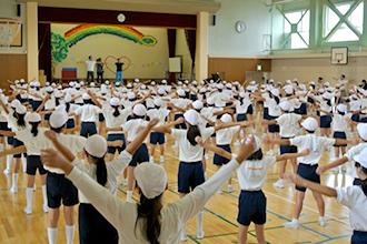 石川県金沢市にある押野小学校で、ラジオ体操出張授業が開催され、5年生と6年生の児童180名が授業に参加しました。
