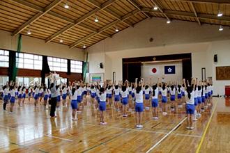 奥出雲町の阿井小学校でラジオ体操の出張授業を開催しました。