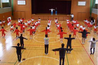 ラジオ体操の小学校出張授業