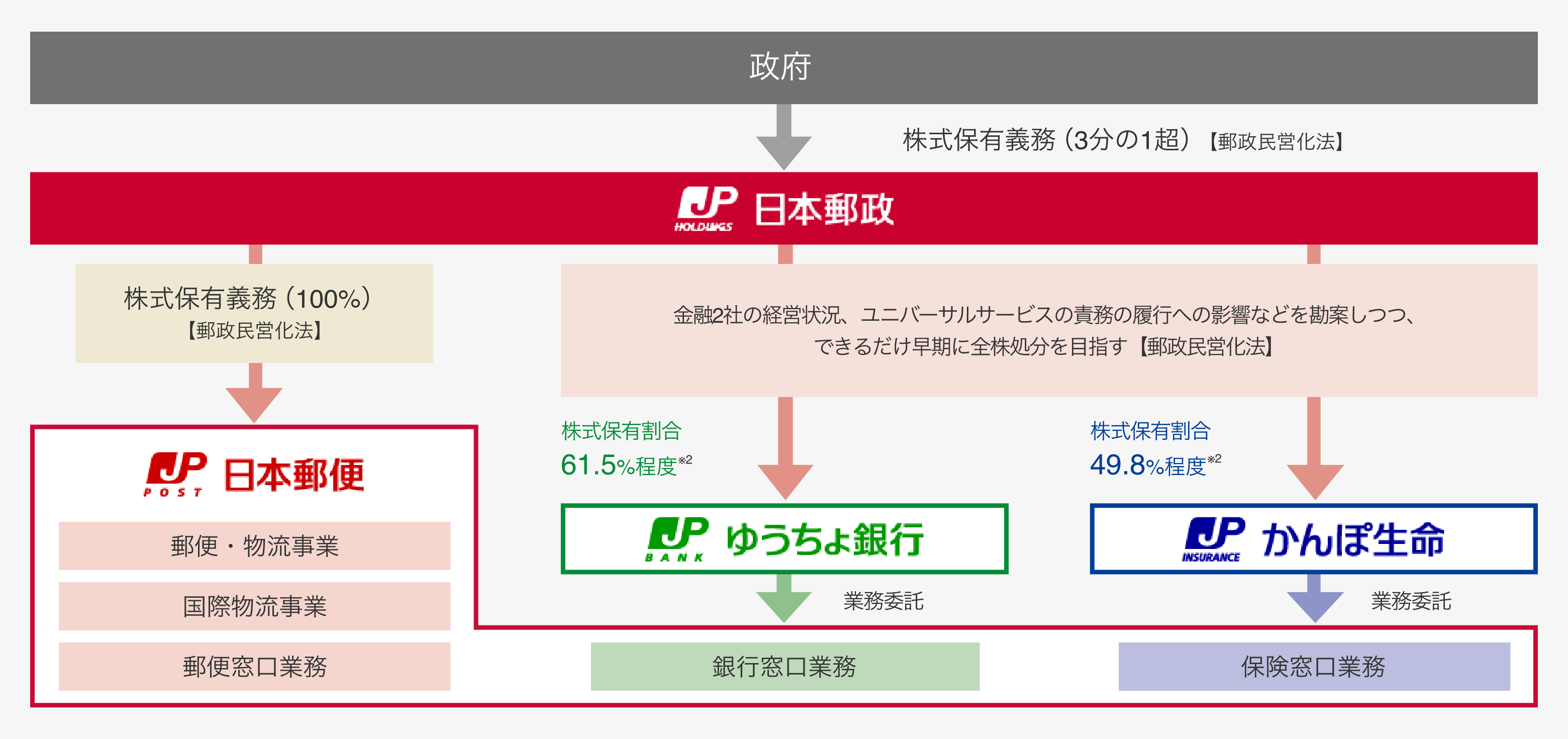 日本郵政株式会社は、ユニバーサルサービス義務に配慮しつつ、金融2社の株式をできる限り早期に処分することが郵政民営化法により定められています。※1