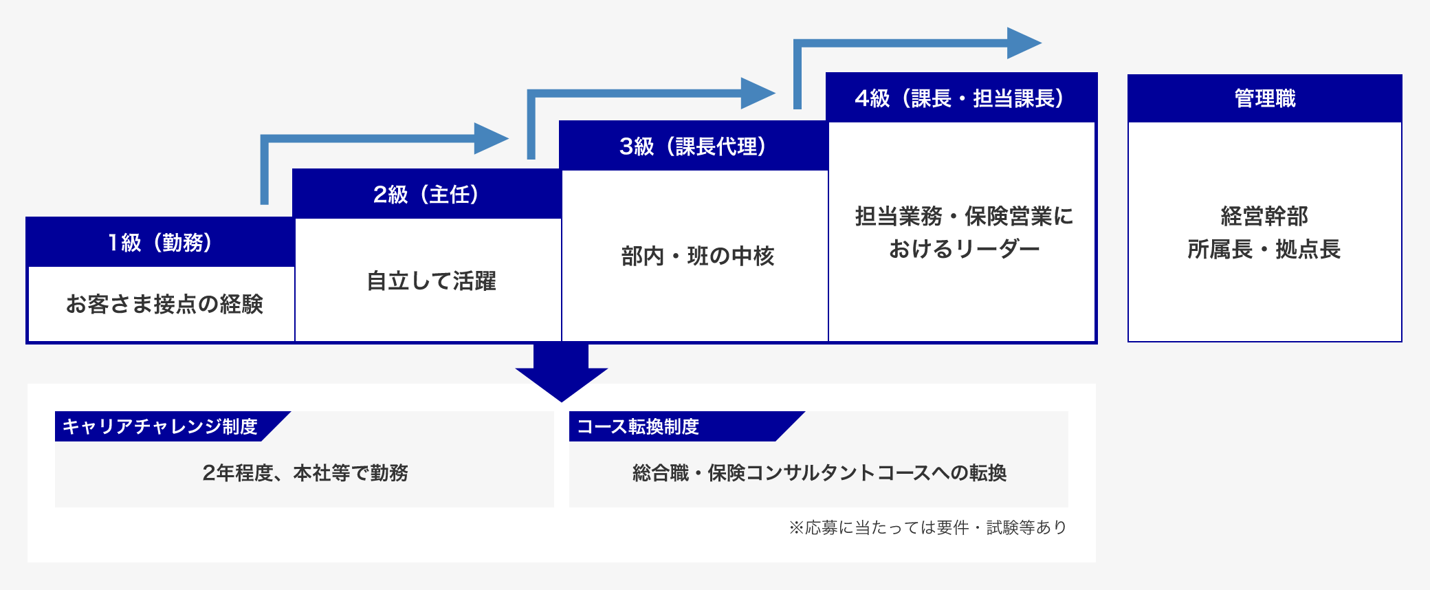 | 等級 | 1級(勤務) | 2級(主任) | 3級(課長代理) | 4級(課長・担当課長) | 管理職 |