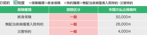 B契約 旧制度 <保険種類>終身保険 <特約種類>無配当疾病傷害入院特約・災害特約